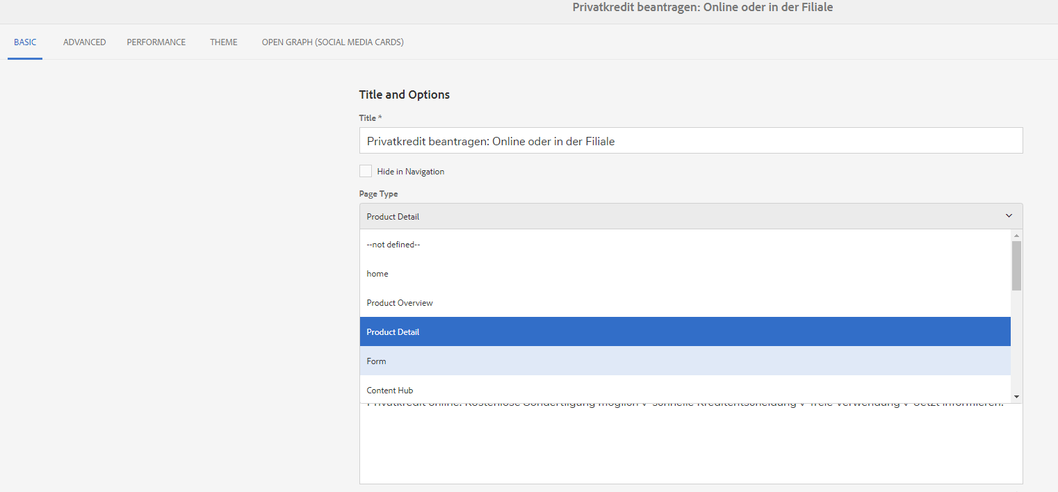 Page Type ist neben den Component Names ein weitere wichtige Dimension in Adobe Analytics, welche ebenfalls auf die manuelle Eingabe in AEM angewiesen ist.