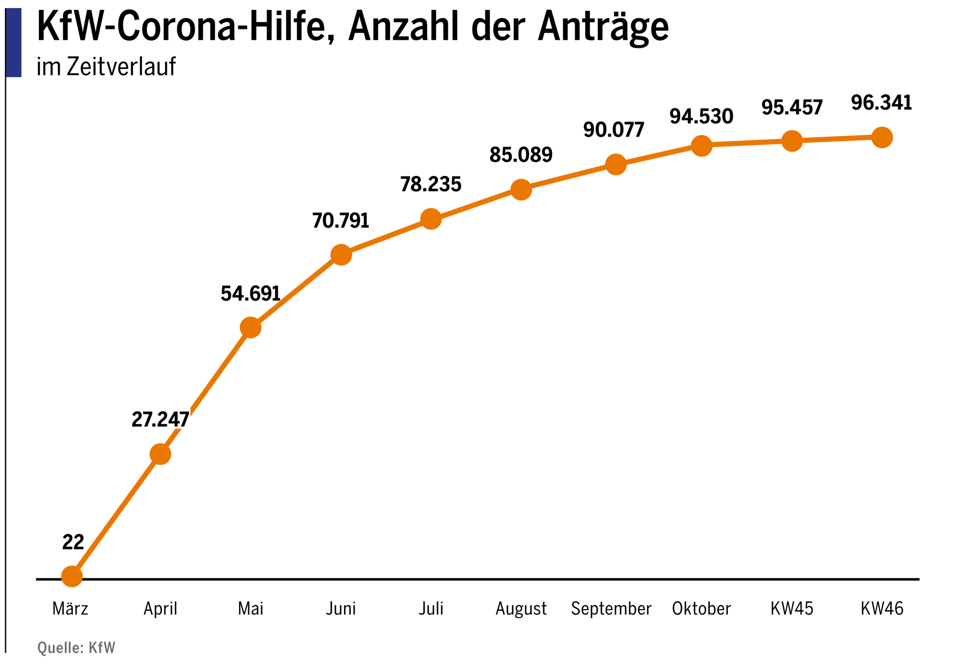Die Politik versucht, von der Pandemie betroffenen Unternehmen finanziell zu helfen. Während Zuschüsse wie die Novemberhilfe gefragt sind, ist das Interesse an KfW-Hilfen in der zweiten Welle erstaunlich gering. Wird sich das bald ändern?