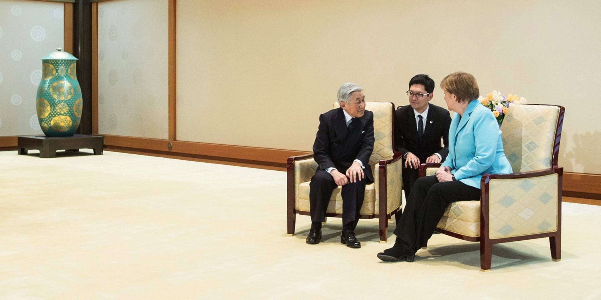 Angela Merkel und Japans früherer Kaiser Akihito hätten ohne Dolmetscher nicht miteinander reden können. Bei komplexen Finanzierungen können Finanzierungsberater zwischen Mittelständler und Bank übersetzen – sie leisten aber noch deutlich mehr. Foto: picture alliance / dpa | Michael Kappeler