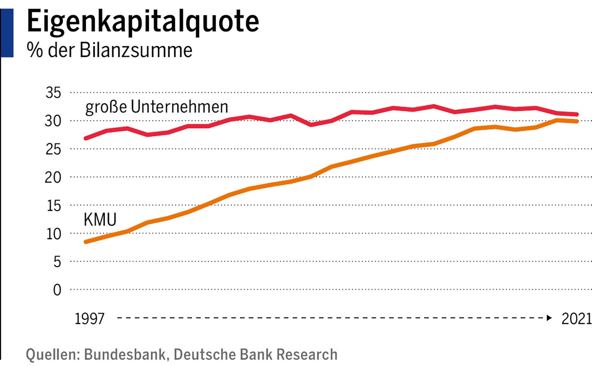 In Summe lässt sich festhalten: Der deutsche Mittelstand ist in Bezug auf den Verschuldungsgrad gut aufgestellt – die Last ist bei den meisten Unternehmen moderat. Das verschafft eine gewisse Resilienz. Die Struktur der Finanzierung ist leider weniger erfasst, hier lauern die größten Gefahren. Viele Unternehmen wurden über Jahrzehnte hinweg in ihrer Finanzierung auf die Kosten hin optimiert, und das geht zulasten der Sicherheit.
