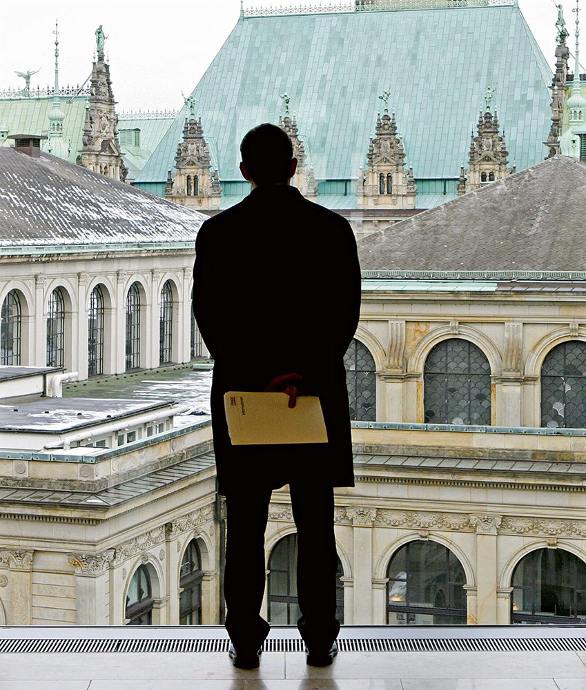 In der ehrwürdigen Hansestadt Hamburg geführt wurden liegen die Handelskammer (vorn) und das Rathaus direkt nebeneinander – tatsächlich wurden die beiden zentralen Institutionen oft von denselben Menschen geführt.