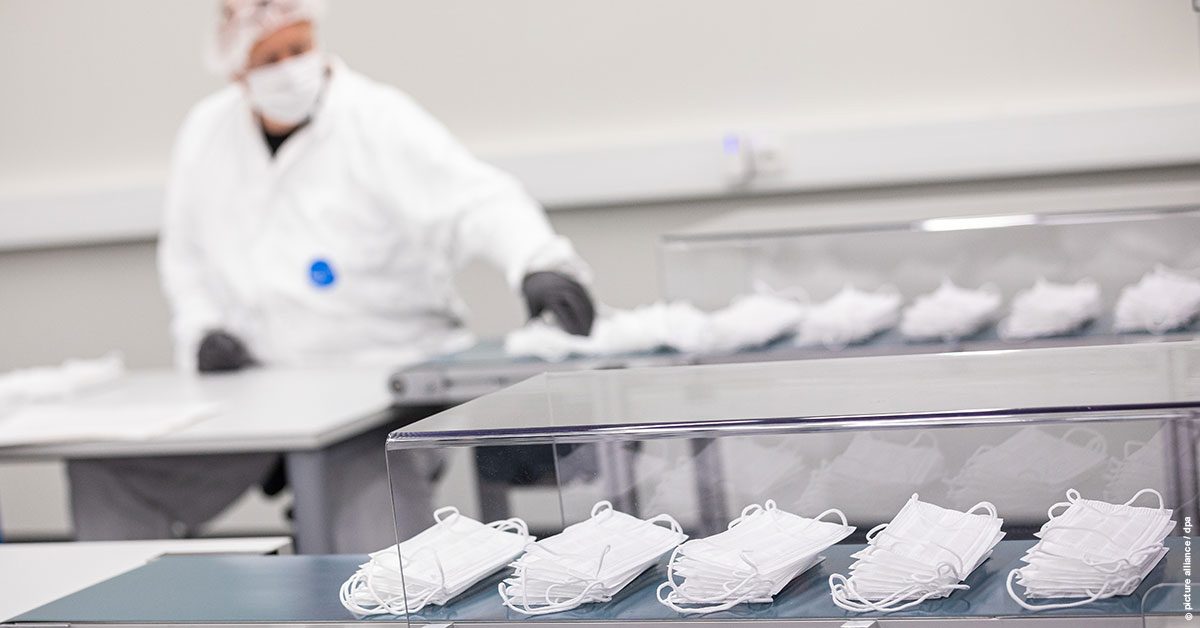 Vor rund einem Jahr ging es los. Jeder wollte Masken haben. Nicht nur in Deutschland, weltweit. Entsprechend schossen die Preise in die Höhe: um bis zu 3.000 Prozent binnen weniger Wochen. Vormalige Cent-Produkte wurden nun für mehrere Euro das Stück angeboten. Diplomatische Konflikte unter Bundesgenossen entbrannten gar – besonders die USA wurden bezichtigt, vorbestellte Kontingente ins eigene Land umzuleiten. Der Engpass bei den vor allem in China hergestellten Masken machte Deutschland und vielen anderen Ländern die Abhängigkeit von chinesischen Medizinprodukten deutlich.