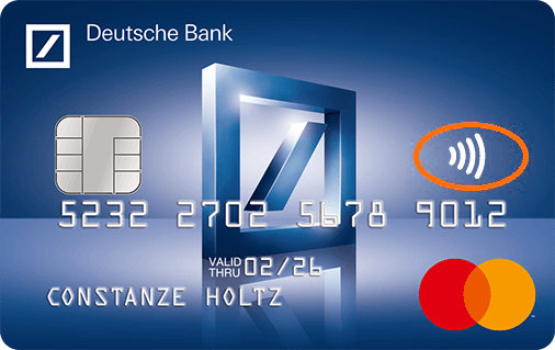 Alle Karten der Deutschen Bank sind mit der kontaktlos-Funktion ausgestattet. Mit dem kontaktlos-Symbol (Welle) weisen wir Sie darauf hin.