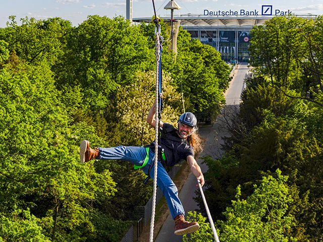 Im März dieses Jahres eröffnete der Kletterwald im Deutsche Bank Park, durch den sich das traditionsreiche Stadiongelände immer mehr zu einer echten Freizeitattraktion in der Main-Metropole entwickelt.