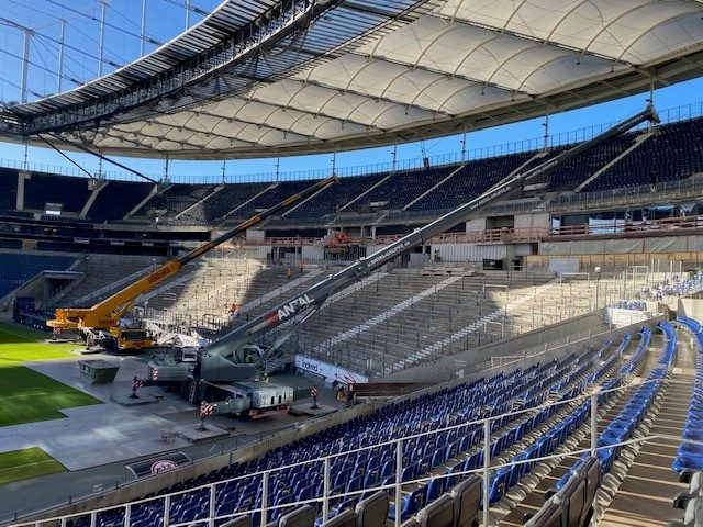 Historische Fußballabende, mitreißende Konzerte, spannende Messen und Kongresse – im vergangenen Jahr war nach pandemiebedingter Pause wieder einiges geboten. In wenigen Monaten werden rund 10.000 mehr Menschen das reichhaltige Angebot genießen können: Das Stadion im Frankfurter Stadtwald wird derzeit ausgebaut. Unter anderem entsteht die zweitgrößte Stehplatztribüne Deutschlands. Die bisherigen Sitzplätze im Oberrang der Nordwestkurve – dem Herz der Eintracht-Supporter – werden in ein modernes Steh-/Sitzplatzsystem umgewandelt. In der Saison 2023/2024 wird das erste Heimspiel vor der Frankfurter Rekordkulisse stattfinden. Dann werden auch mehr als 180 Plätze für Rollstuhlfahrer*innen und ebenfalls vor dem Stadion rund 700 neue Fahrradstellplätze verfügbar sein. Offen bleibt nur die Frage, ob die Stimmung im Deutsche Bank Park überhaupt noch besser werden kann.