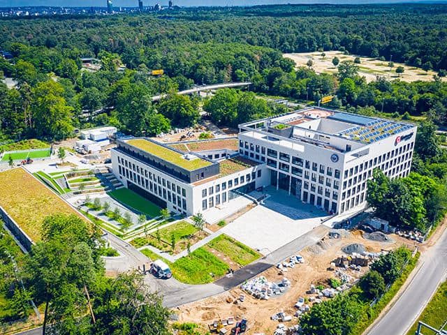 und die Lizenzspielerabteilung werden demnächst in einen gerade entstehenden Gebäudekomplex südöstlich des Stadions einziehen. Das neue, ProfiCamp genannte Zuhause der Eintracht-Familie punktet mit energetischen Bestwerten.