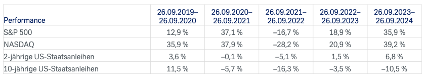 Während kurzfristige Marktschwankungen vor der Wahl üblich sind, ist es wichtig, dieses Rauschen von den langfristigen Treibern der Aktienmarktentwicklung zu trennen, die von soliden Fundamentaldaten abhängen. Rückblickend scheinen die Aktienmärkte mittelfristig eher unbeeindruckt davon zu sein, wer ins Weiße Haus einzieht, was die alte Börsenweisheit bestätigt, dass politische Börsen kurze Beine haben.