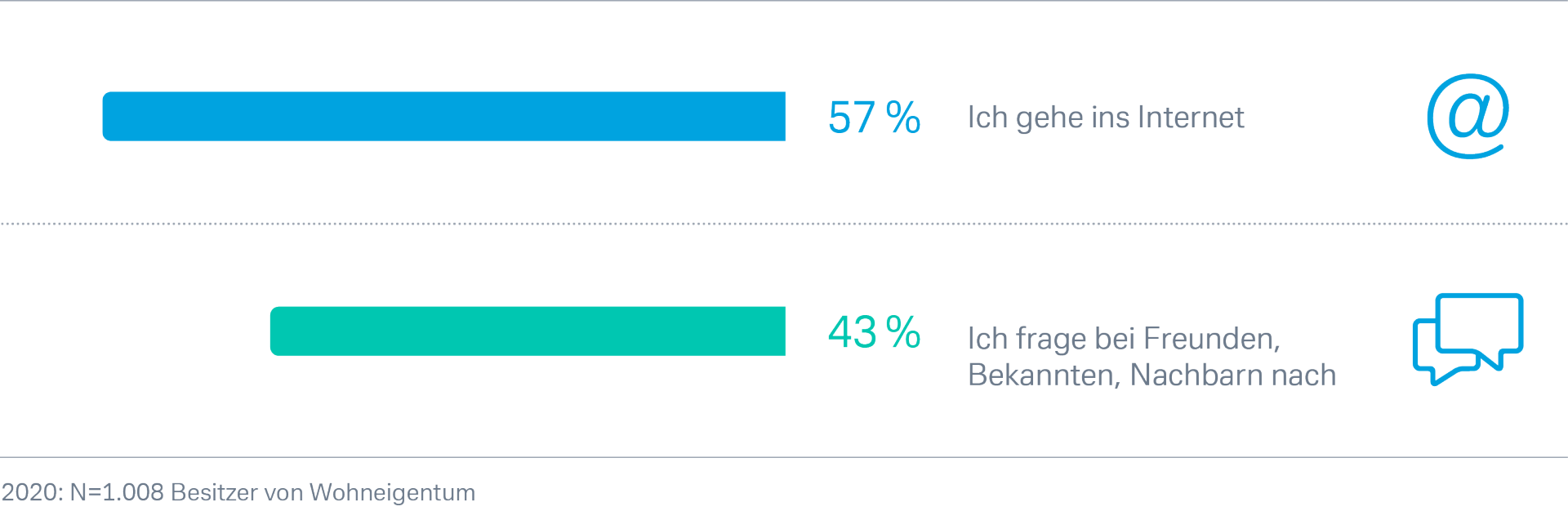 So wichtig der persönliche Tipp bei der Suche nach einem Handwerker nach wie vor ist, liegt dennoch die Recherche im Internet mittlerweile vorn: 57 Prozent der Befragten suchen online nach kompetenter Unterstützung.